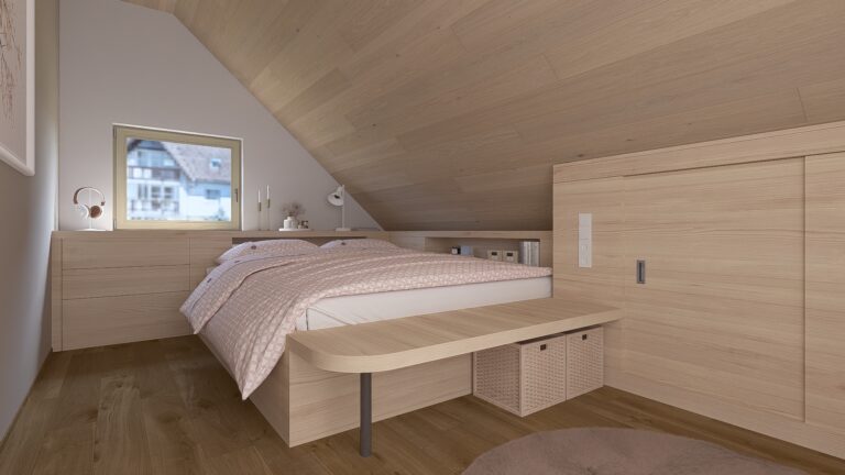 - Technicky to sedí: Spoje jsou přesné. Vestavěné skříně využívají každý centimetr prostoru, protože zaměření i výroba jedou podle dat, ne od oka.